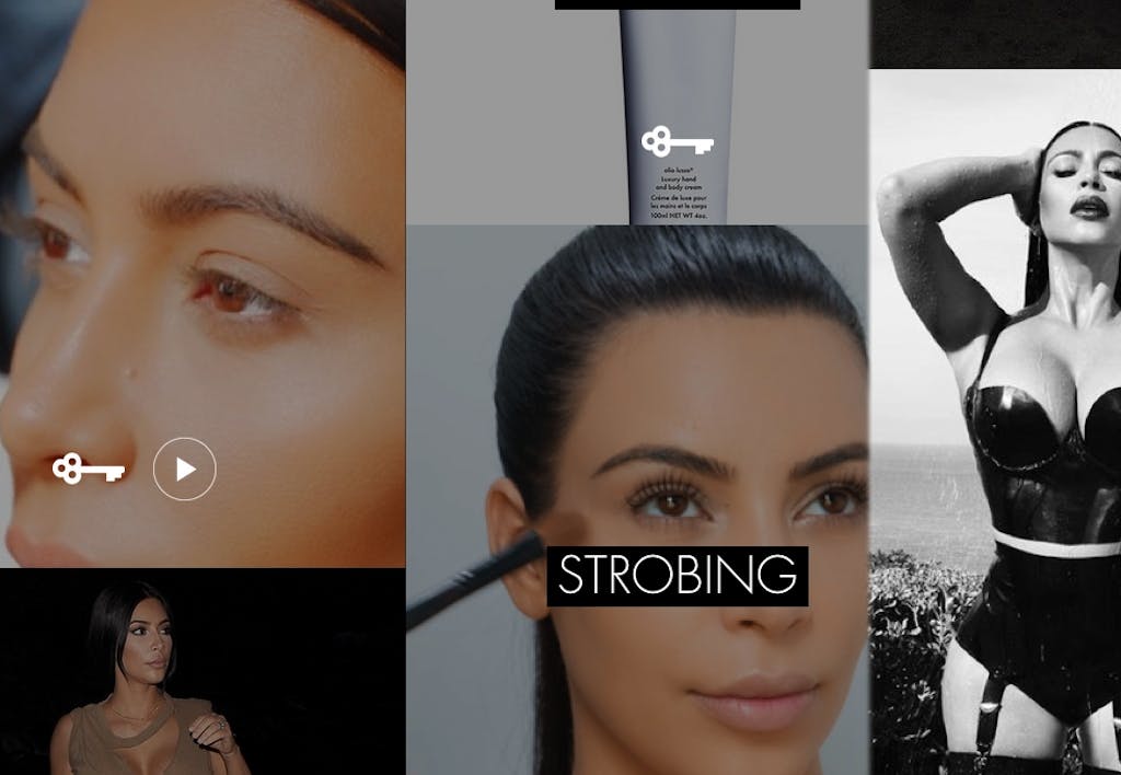 I sitt nye univers avslører skjønnheten selvfølgelig sine kosmetikkfavoritter. Disse linkes opp til en nettbutikk - der du kan kjøpe akkurat samme krem som Kim smører på sine berømte former, mot at hun sannsynligvis mottar en liten del av salget.