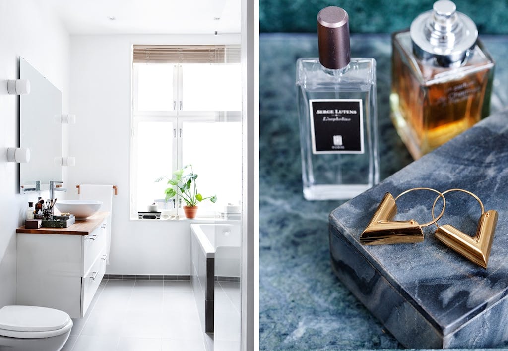 – Jeg er ikke interessert i å ha ting alle andre har. Disse lampene måtte jeg lete lenge etter før jeg til slutt fant en butikk i Barcelona som ville sende meg dem. Men jeg hadde glemt å sjekke målene, og da jeg hengte dem opp rakk de først helt ned til benken. Det viste seg at man skulle kutte til soklene i rosegull selv.