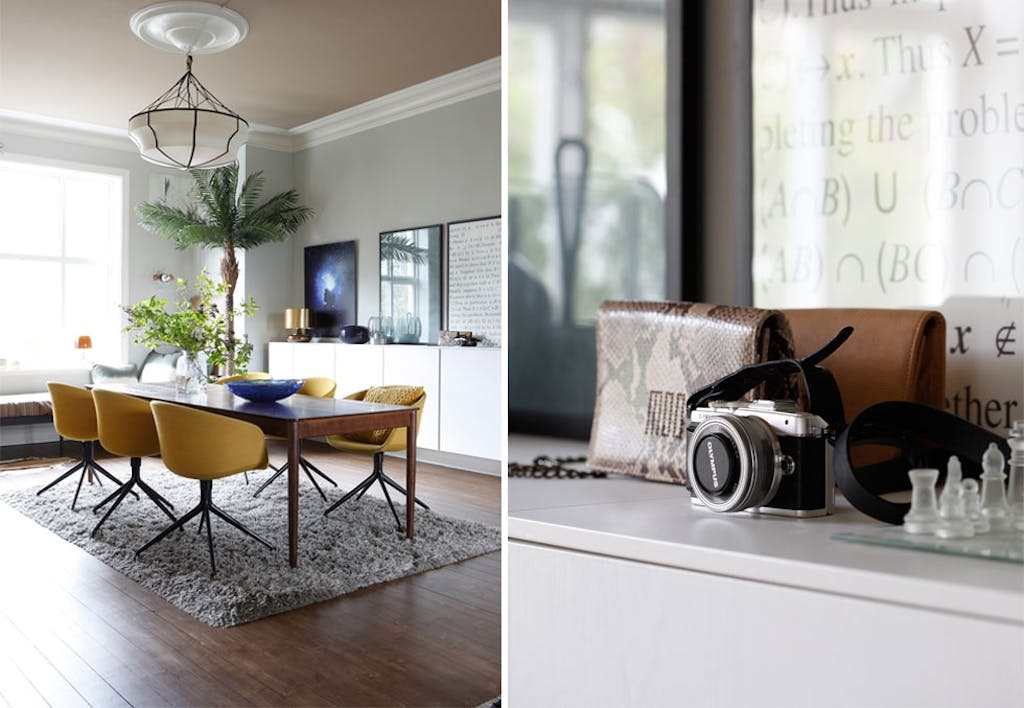 Karianne Sæther, designeren bak veskemerket Moo, har funnet basen sin på Adamstuen i Oslo. Så godt liker hun seg akkurat her i den 100 år gamle leiligheten på 138 kvadratmeter, at hun har kjøpt den hele to ganger. Først sammen med faren til sønnen Tinius, og noen år senere alene. Andre gangen hun flyttet inn endret hun planløsningen for å bedre tilpasse den samboerne sine, Tinius på 12 og datteren Laila på seks.