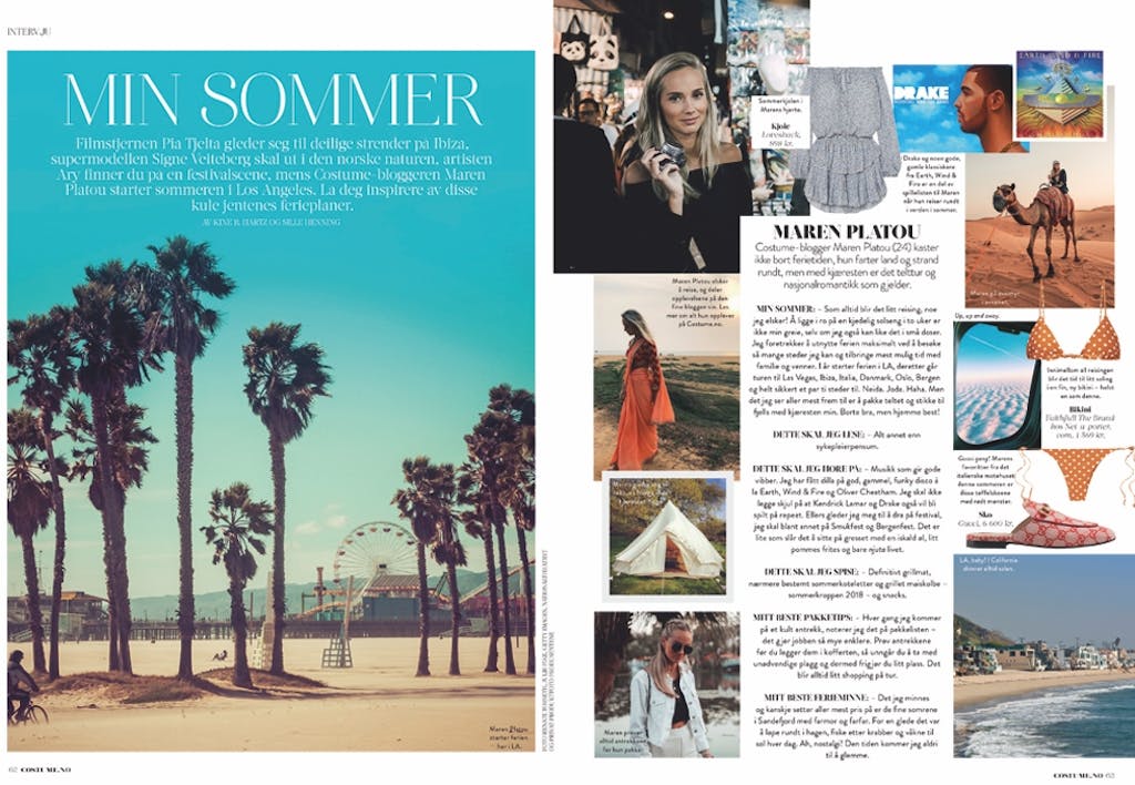 Stor kjoleguide, moteredaktørens sommerfavoritter og de norske kjendisenes ferietip - dette kan du lese mer om i månedens Costume.
