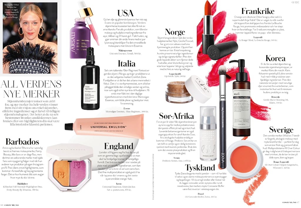 Skjønnhetsbransjen vokser som aldri før, og nye merker fra hele verden vinner frem med sin visjon om enkel skjønnhet, effektive ingredienser og et farvel til tidligere skjønnhetsdogmer. Det betyr at du nå selv bestemmer hvordan ansiktskremen kan brukes eller om highlighteren din skal være lilla istedenfor klassisk perlemor.