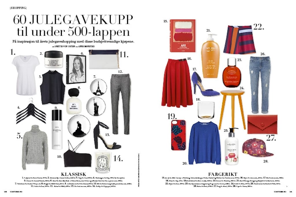 Månedens magasin Nytt Costume i butikk nå Vi går partysesongen i møte med vår fantastiske festguide, 60 julegavetips og nyttige skjønnhetstriks! Av Costume — 25. november 2013 Les det åpenhjertige intervjuet med cover-jenta og supermodellen Lara Stone. Den store festsesongen er i gang. Oppdater garderoben med vinterens fineste kjoler, sko og tilbehør! ...og på side 92 kan du få tre motebevisste jenters aller beste partytips. Bla deg gjennom årets beste julegavetips til under 500-lappen!Les mer i vår desemberutgave! Lignende artikler Mote Ny sko spås å bli en stor konkurrent til sneakers denne vinteren Film & serier Her er de 25 beste julefilmene som gir deg skikkelig julestemning! Hudpleie Derfor vasker mange nå ansiktet med denne butikksjampoen til 30 kroner Hår Stor trend: Derfor vender flere og flere tilbake til butikksjampo Kultur 9 morsomme selskapsleker som sørger for en fantastisk fest Annonse Smart hårstyling: Dyson Airwrap i.d.™ gir inspirasjon og personlig veiledning
