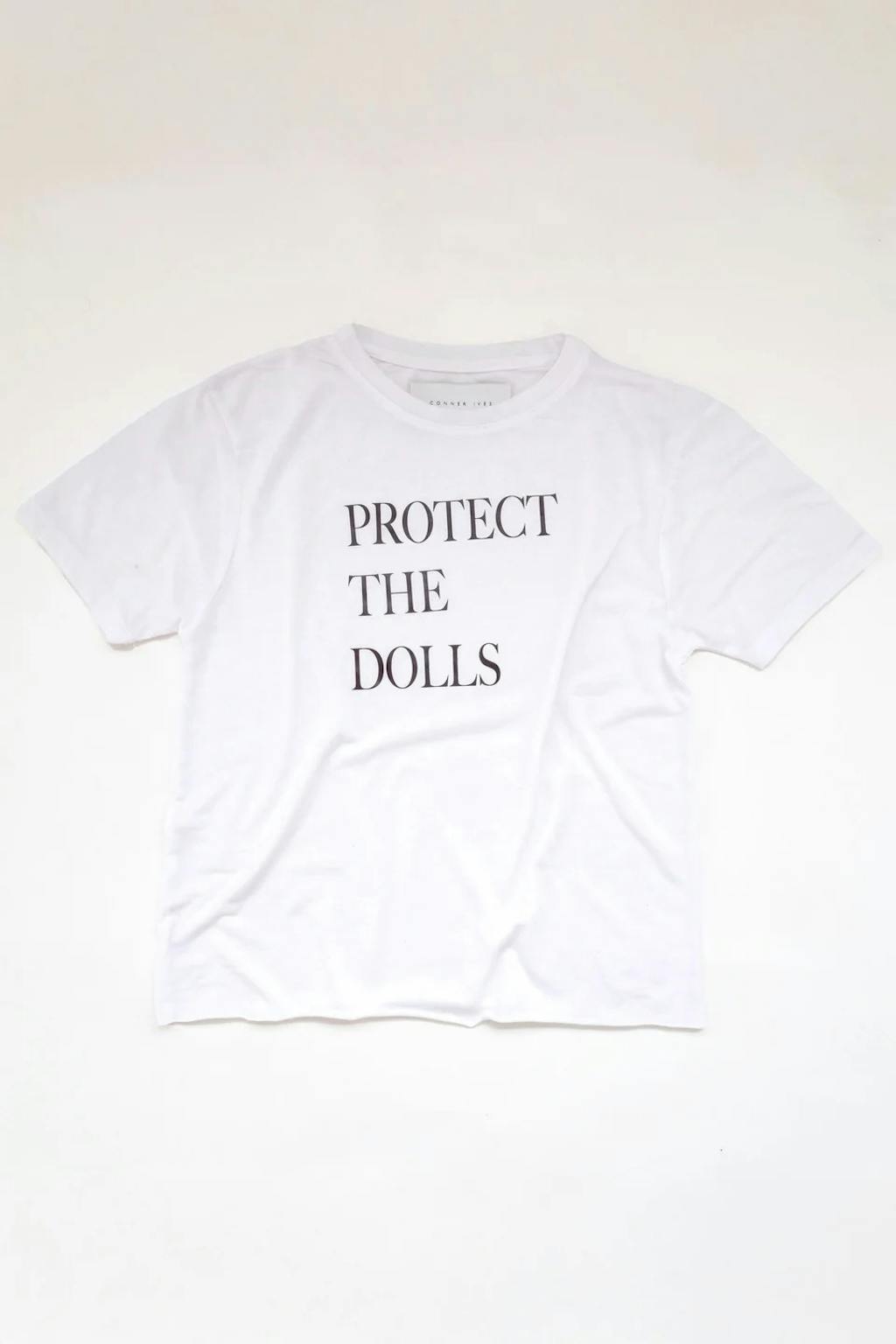 Det er det nyere merket – hvis sortiment primært består av upcyclede varer – Conner Ives, som står bak den populære T-skjorten, som ifølge Glamour, ble laget på et innfall dagen før Conner Ives' høst/vinter-show i februar 2025.