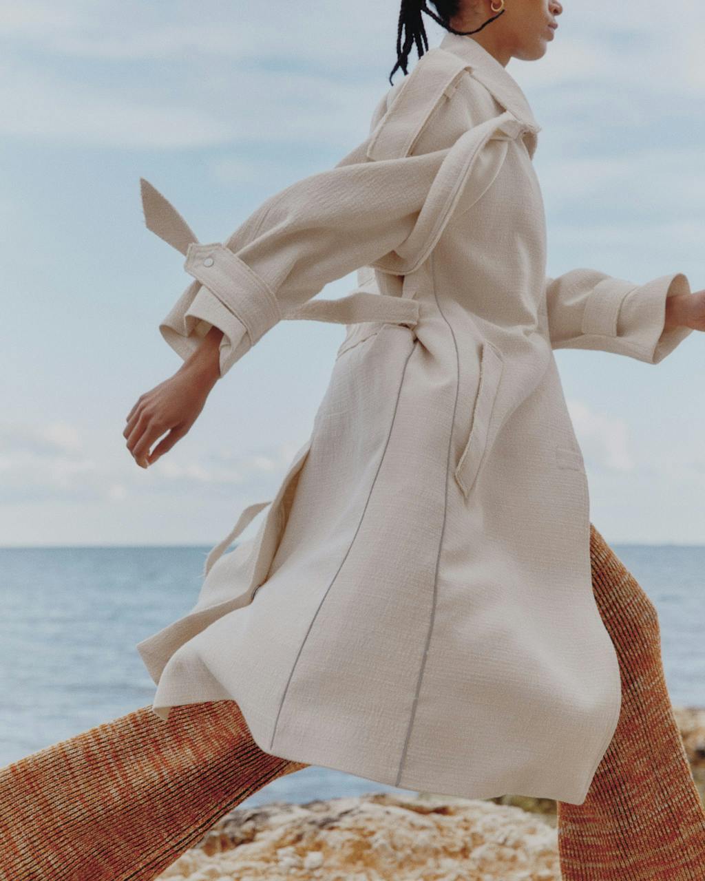 Trenchkåpen er oppdatert med et nytt uttrykk, cargobuksene har fått en ekstra vask eller to, tanktoppene er hakket kulere med nytt print og et par stiletthæler enda mer sofistikert, som alle er nøkkelplagg av kolleksjonen. Kontrasten mellom de håndlagde detaljene og det uformelle snittet er et gjennomgående uttrykk i kolleksjonene.