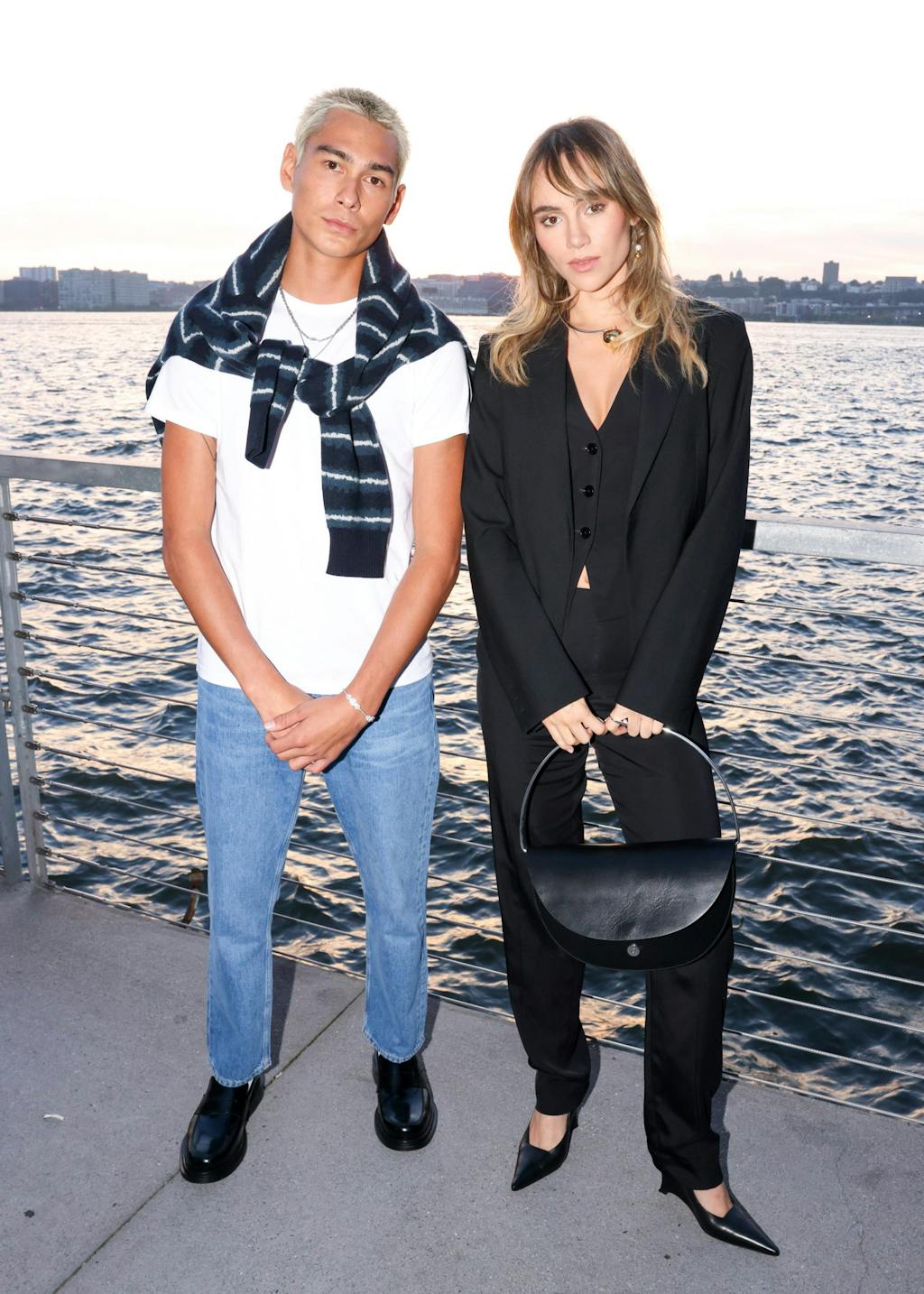 Hari Nef, Evan Mock & Suki Waterhouse på første rad rett før showet starter.
