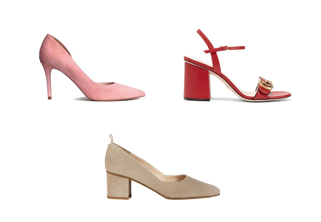 Som gjest i bryllup er det aller fineste å komme opp i høyden. Om du ikke er så godt vant til å gå i høye hæler finnes det mange alternativer. Ett av dem er tykk hel, som skoen fra Gucci og ATP. Er du usikker kan du gå for kilehæl-sandaler, et alternativ som støtter bedre enn de fleste høye sko. Et godt tips er å ha med et ballerina-par i vesken, slik at du kan bytte om når festen starter.