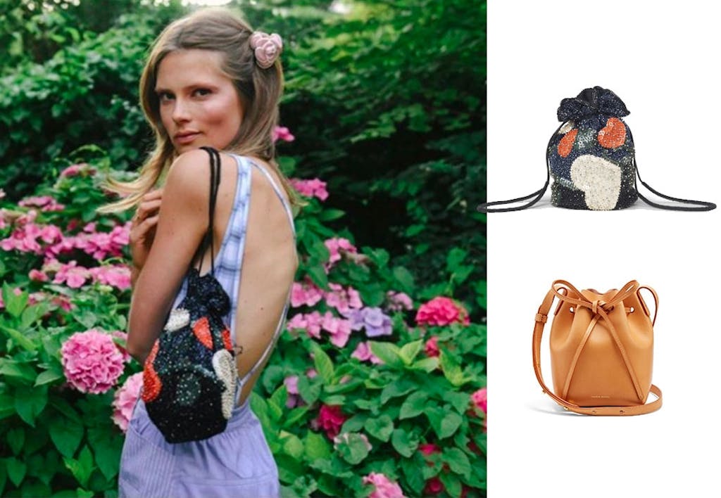 Vesken er en miniversjon av den kjente posevesken, eller bucket bag, og er perfekt for fest - eller om du kun har med mobil og lommebok. De broderte perlene og de fargerike mønstrene gjør vesken ekstra søt og feminin. Kjedebutikkene og andre store luksusmerker har kommet etter, og nå finnes veskemodellen overalt. Hvilken modell går du for?