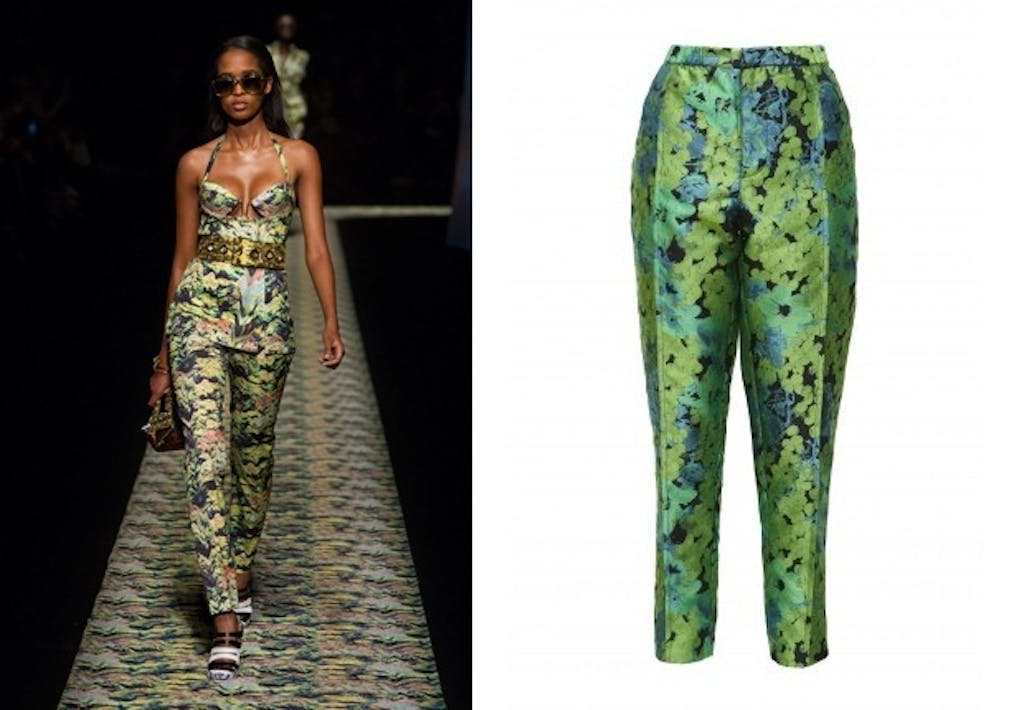 En af sæsonens store tendenser er jungle og en anden blomster. Gør derfor som hos Kenzo og brug et par grønne bukser med blomster til et cool safari-look.