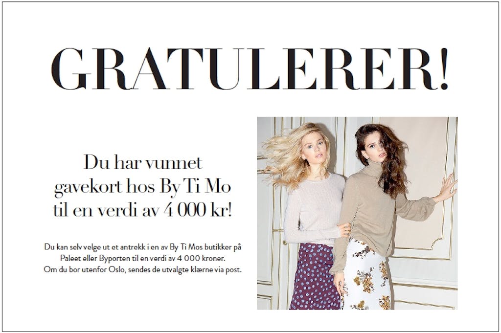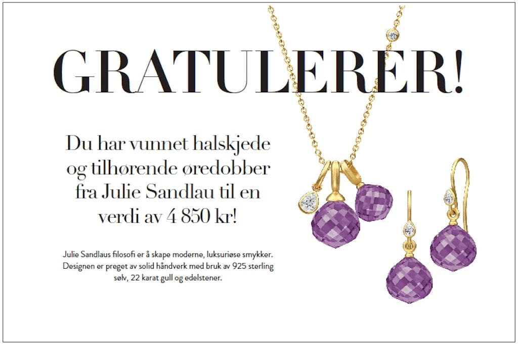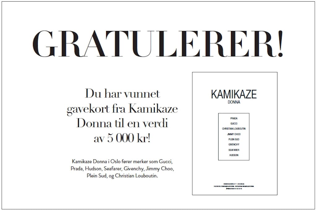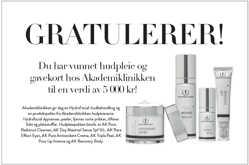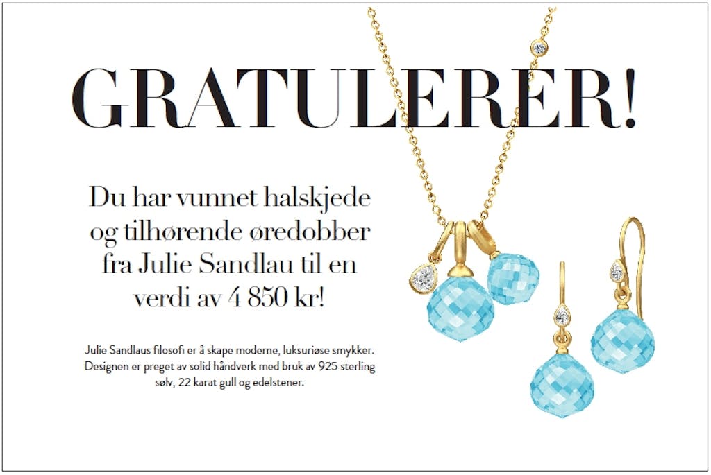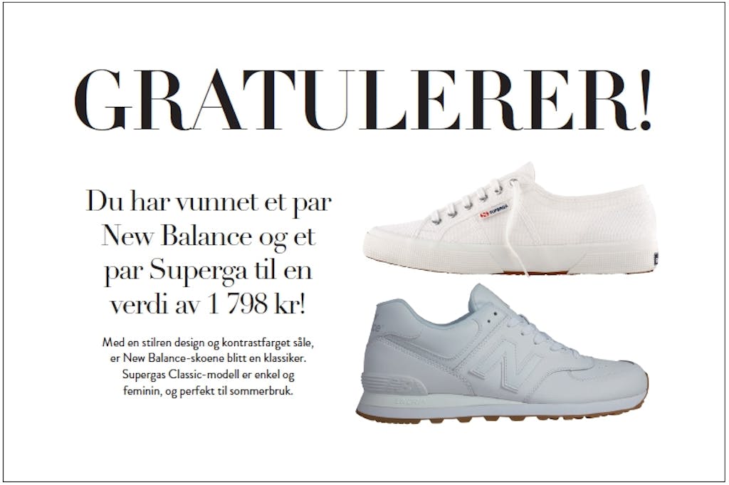 Mote Har du funnet en gullbillett? Septemberutgaven er i butikk, og vi har gjemt hele 24 GULLBILLETTER i bladene, med premier for over 100.000 kr. Kanskje finner du en i bladet ditt? Av Redaksjonen — 12. august 2015 Se så mange fantastiske premier du kan vinne! Lignende artikler Mote Ny sko spås å bli en stor konkurrent til sneakers denne vinteren Film & serier Her er de 25 beste julefilmene som gir deg skikkelig julestemning! Hudpleie Derfor vasker mange nå ansiktet med denne butikksjampoen til 30 kroner Hår Stor trend: Derfor vender flere og flere tilbake til butikksjampo Kultur 9 morsomme selskapsleker som sørger for en fantastisk fest Annonse Smart hårstyling: Dyson Airwrap i.d.™ gir inspirasjon og personlig veiledning