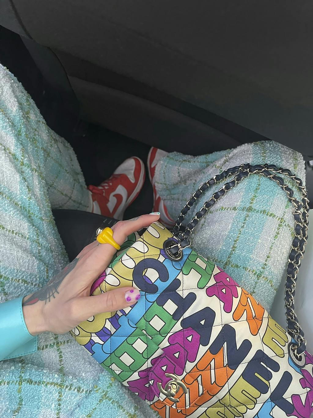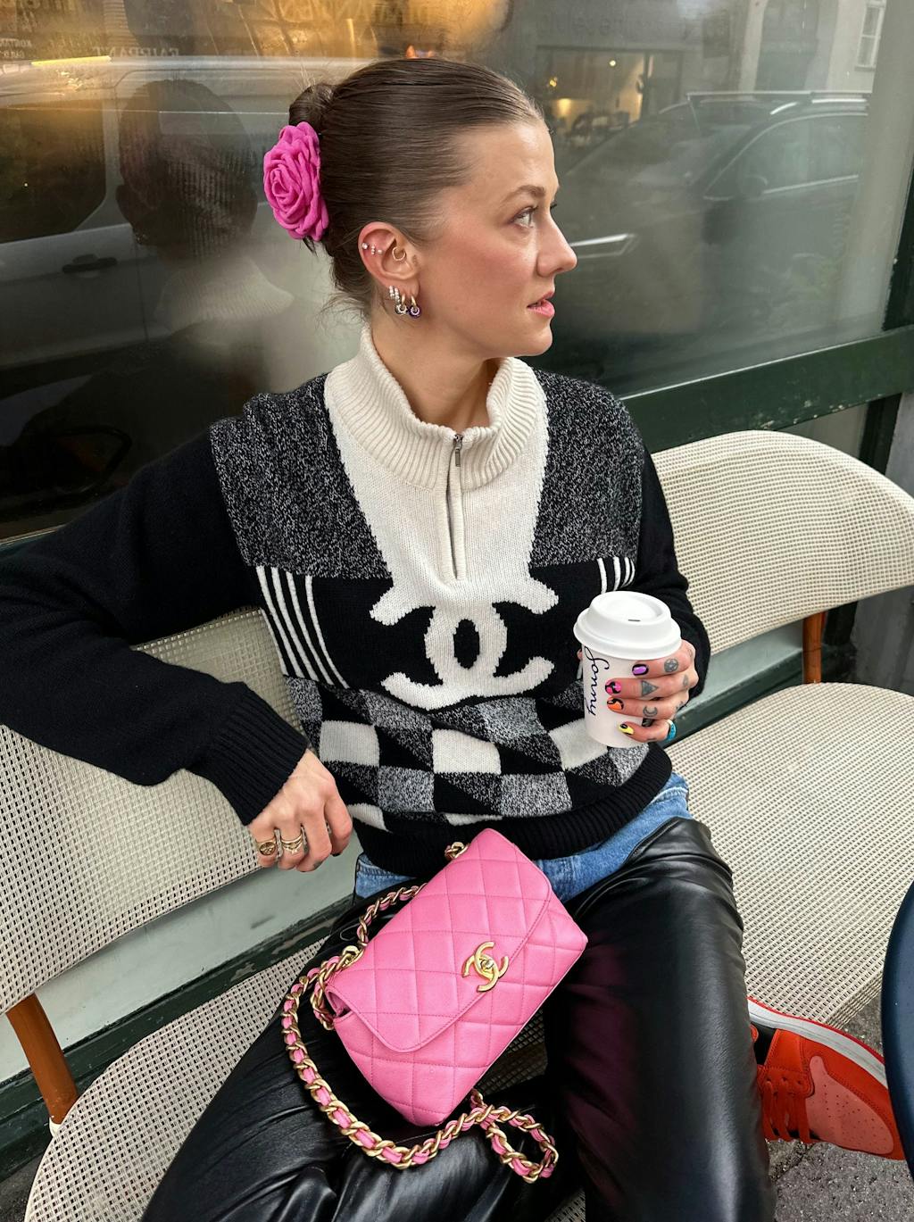 – For meg er det viktig at personligheten din skinner igjennom uansett hva man har på deg. Du skal bære plagget og ikke omvendt. Jeg tror mange umiddelbart tenker at Chanel er veldig klassisk og damete, men jeg liker å tro at Chanel er et merke alle kan rocke uansett hvilken stil man har. Det er virkelig et massivt univers! Jeg bruker gjerne mine klassiske jakker med sneakers og slitte jeans, og veskene går jo til alt uansett, hallo!