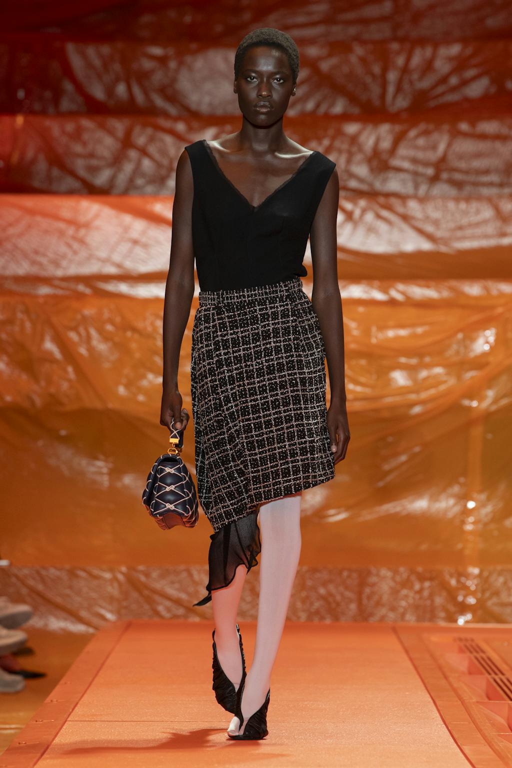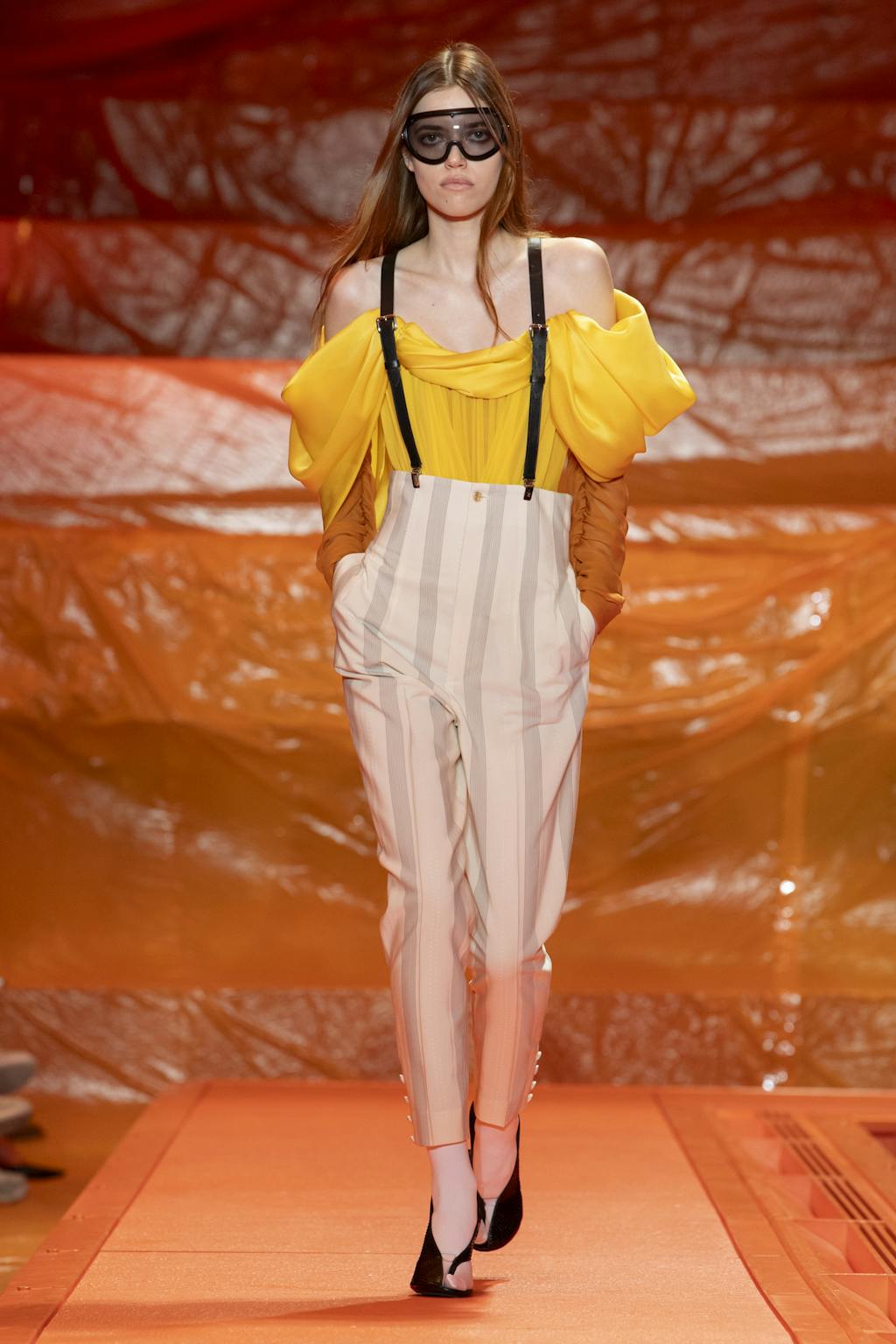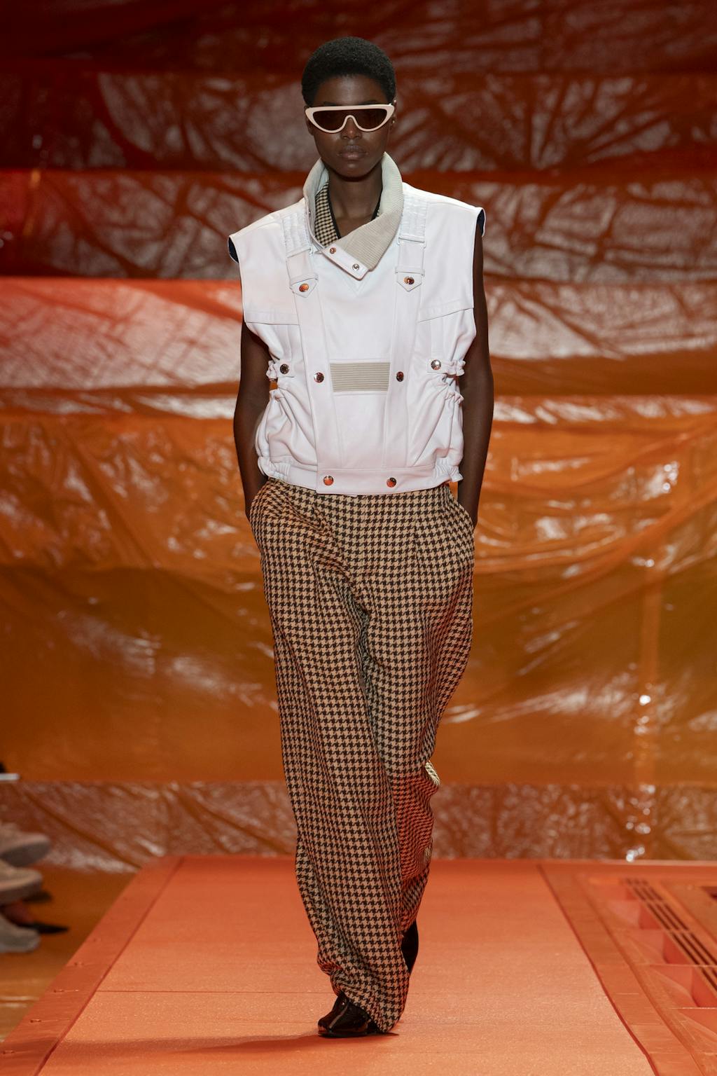 Showet fant sted ved den historiske Champs-Elysées, et sted som harmoniserte perfekt med Louis Vuittons forkjærlighet for reiser. Lokalet var helkledd i en varm og iøyenfallende oransje, som stod i fin kontrast til fargene i kolleksjonen. Kolleksjon og omgivelser kom sammen i en blanding av noe romantisk og melankolsk, og gir assosiasjoner til en retro dystopi - tenk Blade Runner fra 1982. På første rad satt A-listere som norske Renate Reinsve, Zendaya og Cate Blanchett blant de mange celebre gjestene som var tilstede.