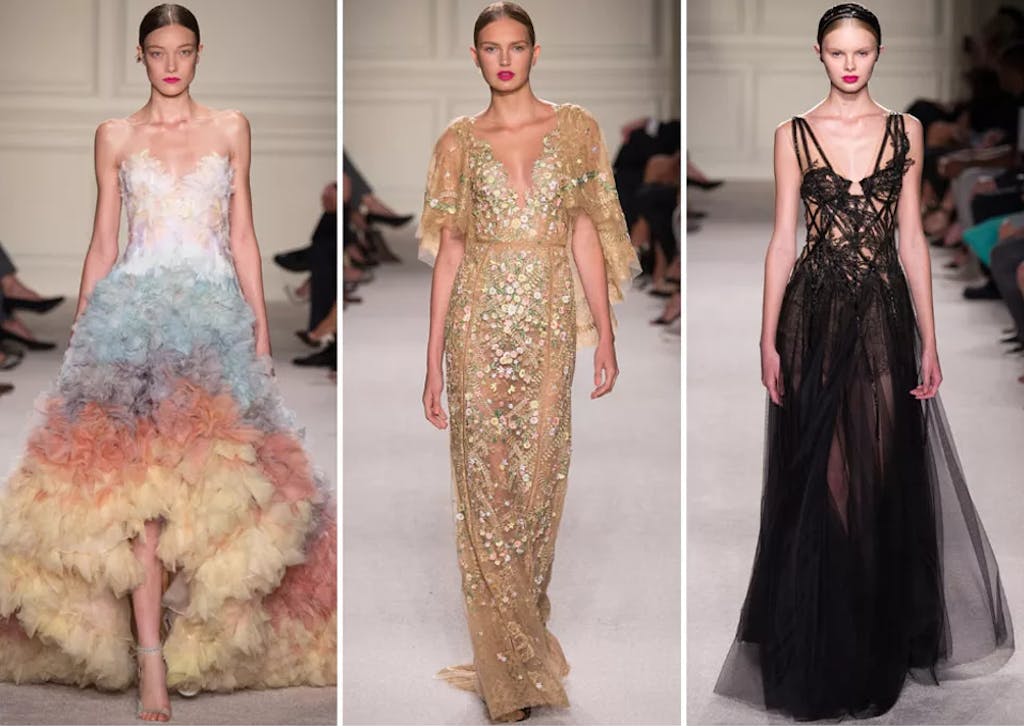 Det amerikanske motehuset Marchesa er kongen av kjoledesign. Den forføriske festkolleksjonen så ut som små kunstverk med syrlige detaljer i blonder og fjær. Vi har allerede begynt å drømme om sommeren!