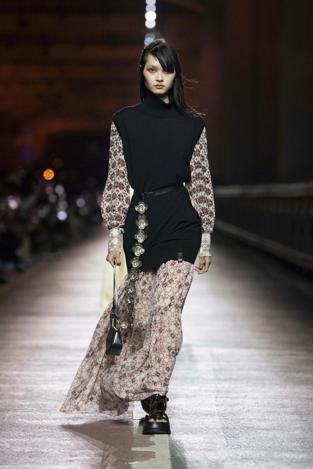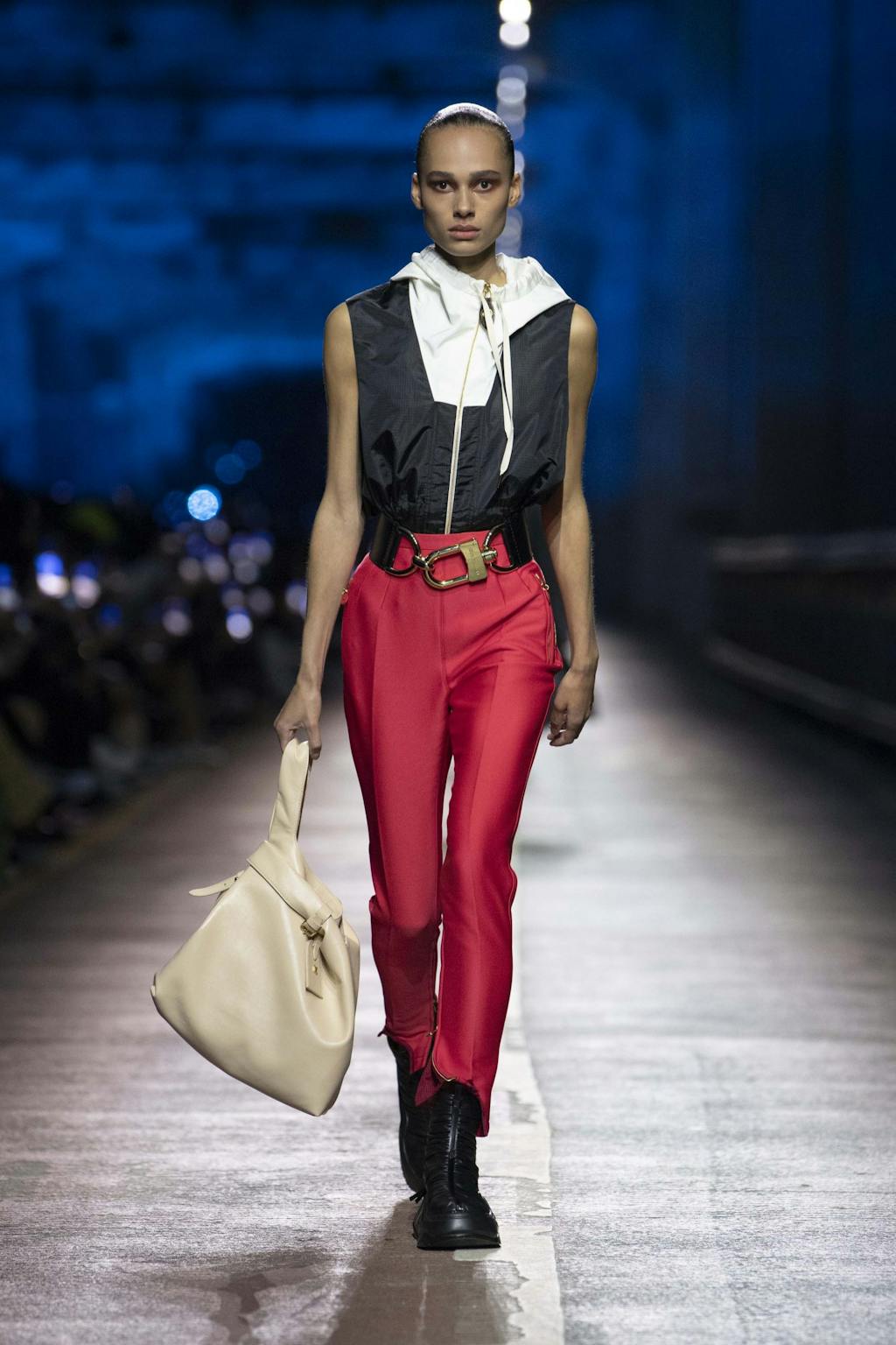 Matchende sett, a-linjeformede skjørt og maxi-skjørt gikk også igjen, i spennende kontrast til sko med kraftige såler i form av boots, sneakers, mary-janes og sandaler. På tilbehørssiden fik vi se Y2K-inspirerte solbriller og belter med overdimensjonerte metalldetaljer; og som vanlig et stort utvalg av fantastiske vesker både med og uten det ikoniske monogrammet.