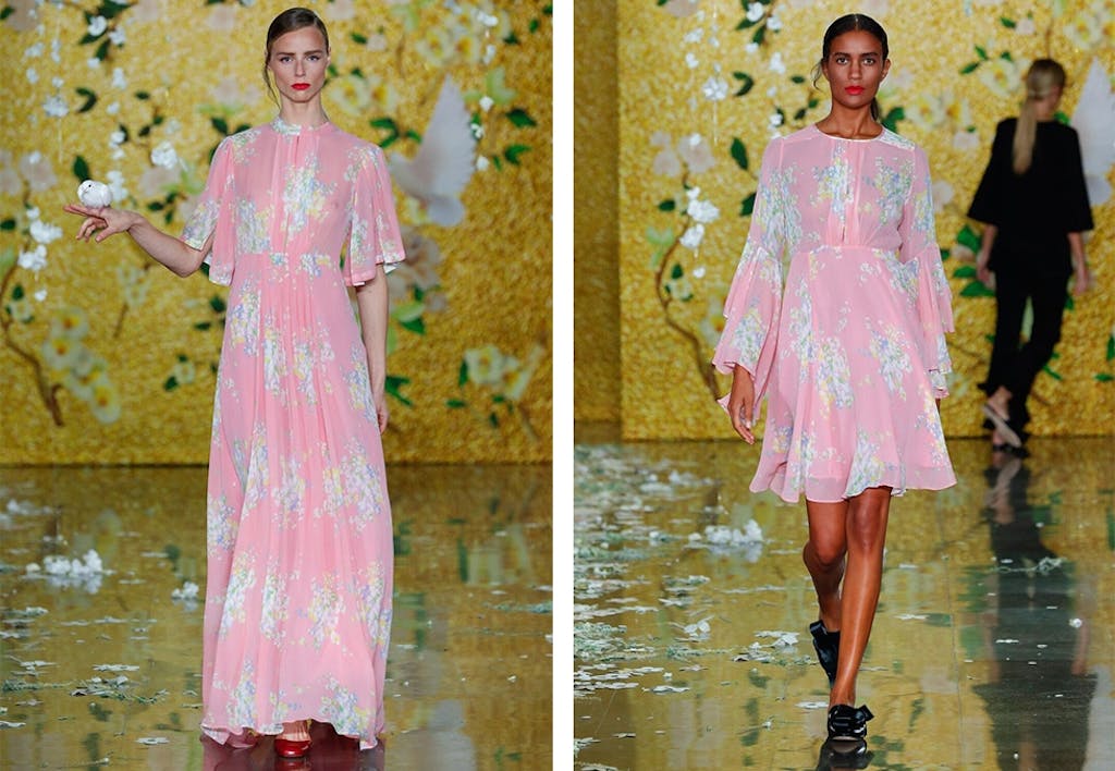 Kjoler med lekre blomstertrykk, løse topper, silke, lette, flagrende stoffer og cut-out-blonder har blitt merkets signatur og preger også denne kolleksjonen.