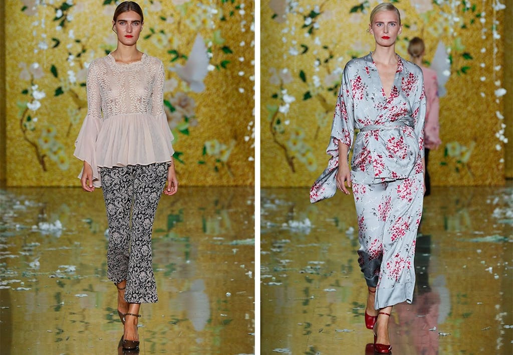 Høydepunktene fra visningen er mange: den indokinesisk-inspirerte drakten i lyseblå silke og blomstermønster i rød og rosa, den kremhvite peplum-toppen med vide volangermer, den hvite korte kjolen med blondeapplikasjoner, den hvite 70-tallsdrømmen av en kjole med empireliv og broderier, den rosa lange kjolen med blomstertrykk, den kremhvite lange kjolen med knapper og broderier og ikke minst den lange kimonoen.