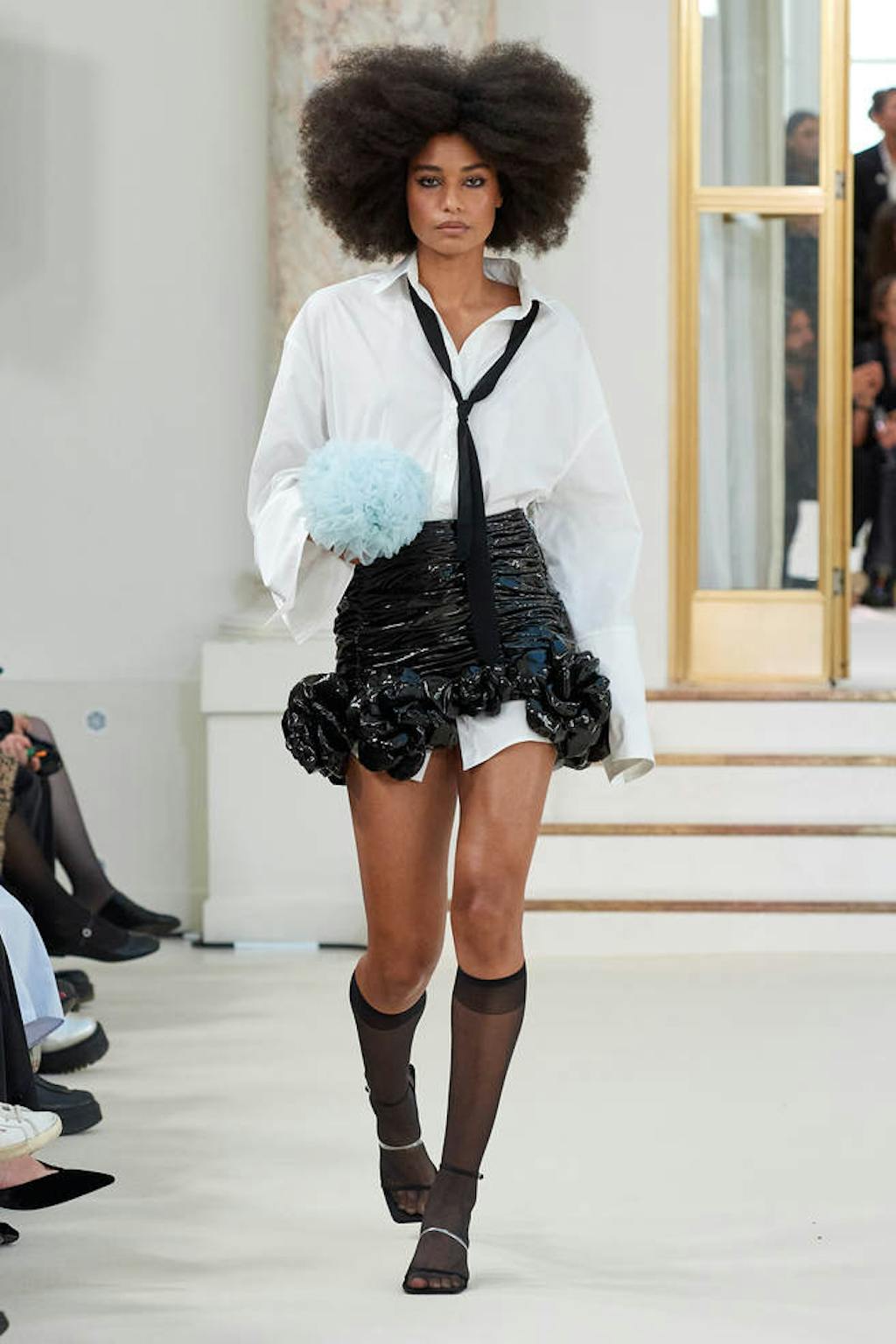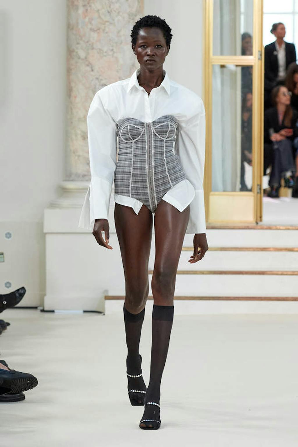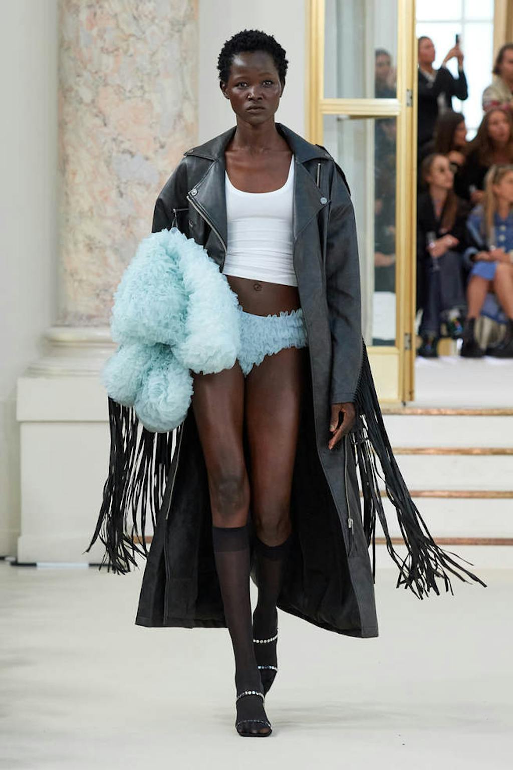 Kjoler, miniskjørt, bomber-jakker og korsetter blir lekt med i et hav av materialer og teksturer, en gulvlang lakk-kjole blir stylet med en bomullssinglet, hotpants blir matchet med en stram skjorte. Det er et rebelsk og uventet møte mellom det feminine og maskuline, og vi vil bare ha mer.