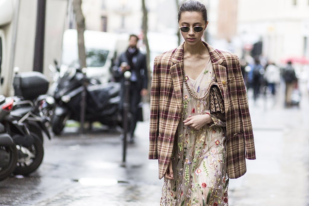 Selv om man tenker at volanger hører sommeren til, kan de fortsatt brukes denne sesongen. Bloggeren Susie Lau bruker sommerkjolen med en tykkere genser under. I tillegg har hun stråvesken i hånden - fin kombo!