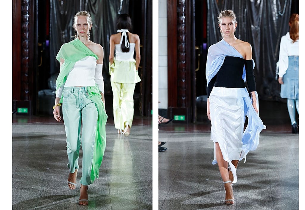 Bak det Oslo-baserte klesmerket Moiré står designduoen Charlotte Fische og Linn Sannes Brevik-Ribeiro, som møtte hverandre under studier for over 12 år siden. Moiré har allerede etter få sesonger fått en sentral rolle i den norske motebransjen. I fjor viste Moiré under Bikbok Runway Awards, og denne sesongen står de nå på egne ben - noe som gjør visningen ekstra spesiell. Drapering med små detaljer, fine drakter med maskulint preg, rå denim og kjoler med snøringer oppsummerer showet, som fikk stor applaus etter den siste modellen gikk av catwalken. Et veldig sterkt debutkolleksjon - vi gleder oss til fortsettelsen!