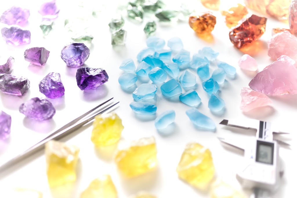 Edelstenene som blir brukt i kolleksjonen er blant annet Ametyst, Topas, Prasiolitt og forskjellige typer Kvarts som skaper en flott fargepalett. Selve ringen kommer i både hvitt gull og rosegull og skaper en fin kontrast til de fargerike edelstenene.