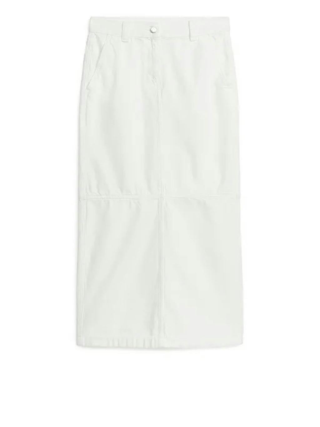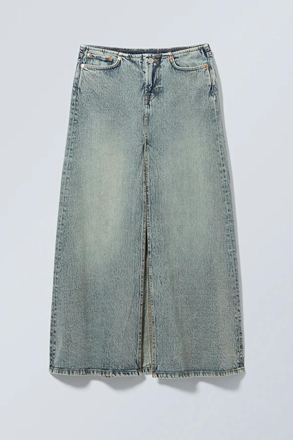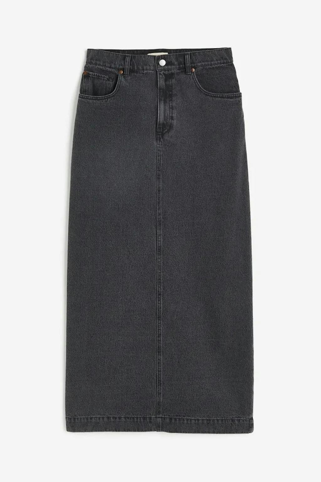 Det lange denimskjørtet kommer i flere lengder - lårkort, knelangt og gulvlangt. Mulighetene er mange, men det viktigste er at skjørtet er kledd i det kjente og kjære "ola"-stoffet. Style det lange skjørtet med en hvit t-skjorte og et par sneakers. Det kjære denimplagget er dessuten perfekt til høsten, siden det holder litt ekstra på varmen. Bruk det sammen med en strømpebukse, et par høye boots og en strikket genser.