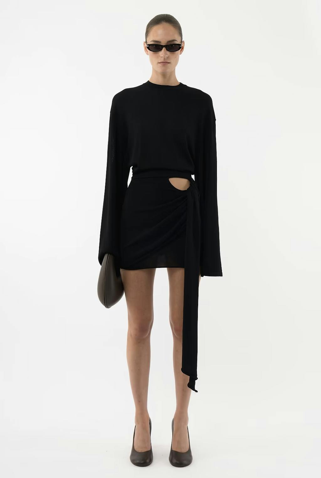 Denne vakre kjolen fra Arakii med lange ermer og cut-out er perfekt med høye hæler og en liten veske.