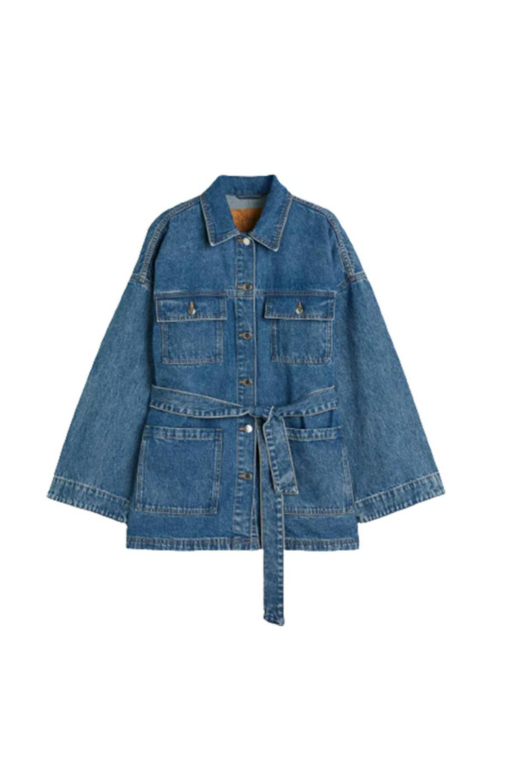 Denimjakke med belte og høye skuldre
