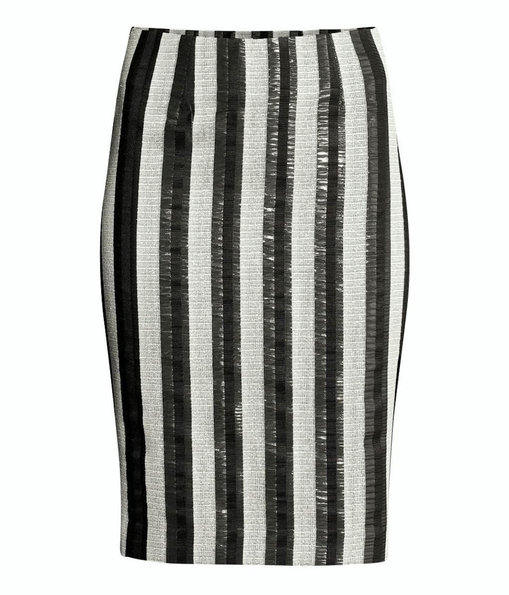 Vertikale striper virker flatterende, så hopp i et åletrangt blyantskjørt, kombinert med en løs og ledig strikkegenser i høst.