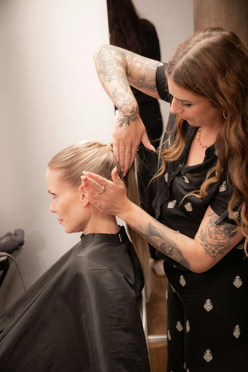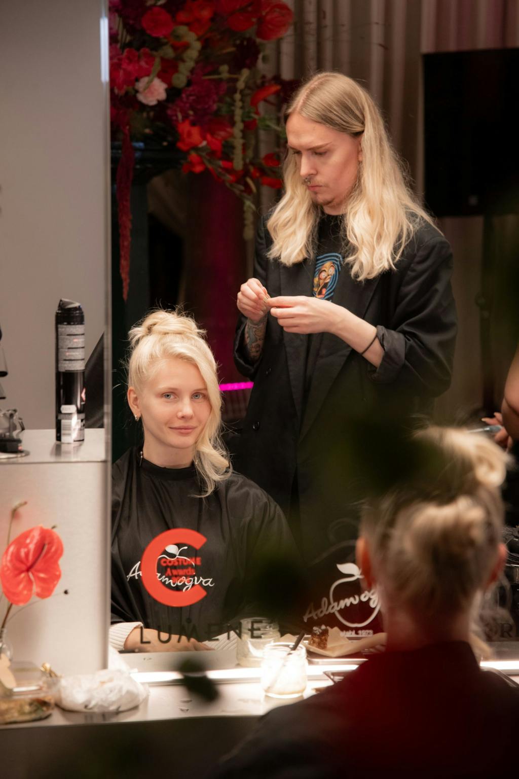 I stolene sitter de første gjestene som blir stylet for kvelden, mens andre mingler rundt i salongen, drikker drinker, spiser, prater og nyter musikken som it-jentene i Rebelle Collective står for. Hårspray, glitter og glam – nå skal det pyntes til fest! Pre-eventet til Costume Awards var et samarbeid med Adam og Eva, Bik Bok, Lumene og Bjørklund – og gjestene fikk ordnet hår, sminke og negler. I anledning det eksklusive arrangementet stilte Adam og Eva opp med alle sine beste hårstylister og frisører, så gjestene var i de beste hender.