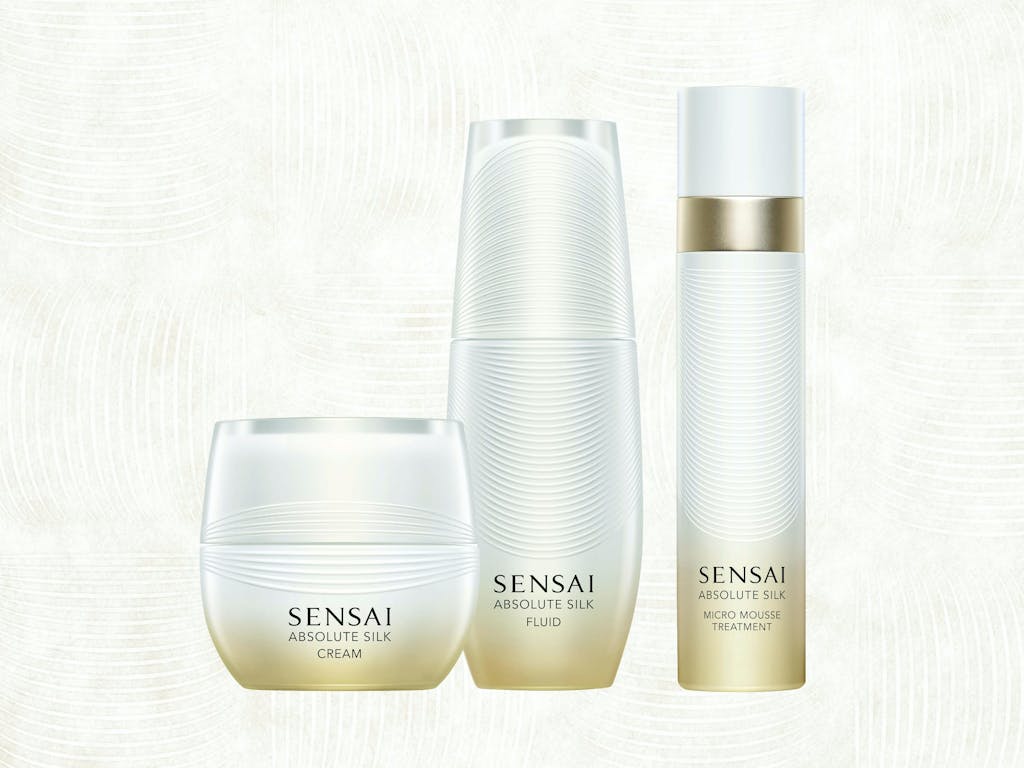 SENSAI sin nye serie ABSOLUTE SILK består av tre luksuriøse produkter. En komplett hudpleierutine som gir huden rikelig med fukt og et silkemykt og glødende resultat.
