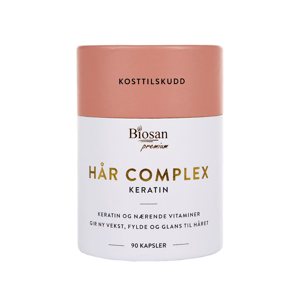 Hår Complex fra Biosan er et kosttilskudd med keratin, nærende vitaminer og mineraler. Tilfører næringsstoffer til hodebunnen og hårsekken hvor håret dannes og bidrar til normal hårvekst.