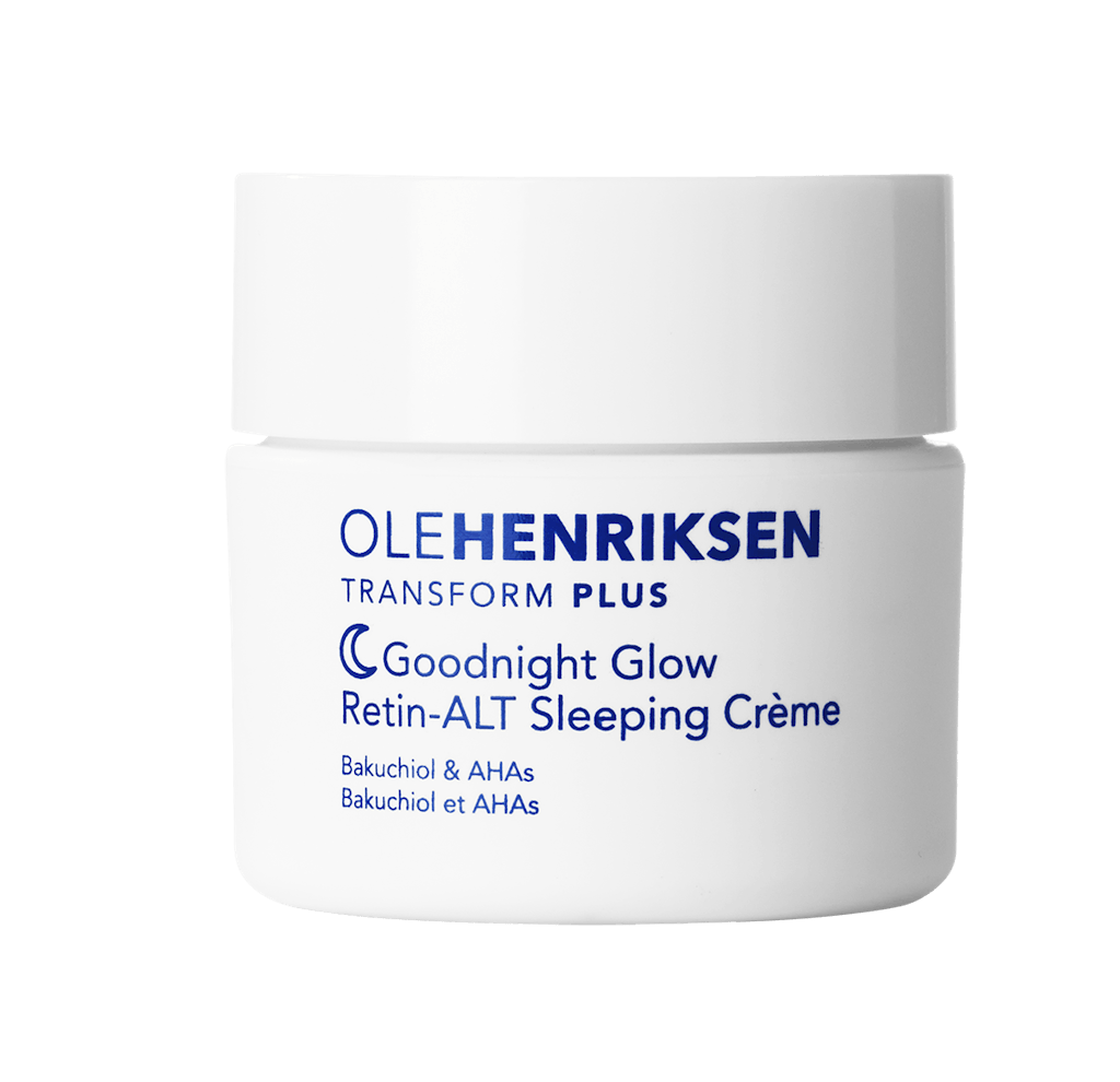 Goodnight Glow Retin-Alt Sleeping C fra Ole Henriksen er en rik nattkrem utviklet med utgangspunkt i Oles filosofi som handler om å EKSFOLIERE. BEHANDLE. PLEIE. Den skal balansere eksfolierenede ekstrakter med dypt fuktighetsgivende og nærende ingredienser, som gjør den anvendelig for selv den mest følsomme huden. Ingrediensen bakuchiol – en naturlig retinol-lignende ingrediens – skal booste cellefornyelsen, redusere fine linjer, rynke og hyper-pigmenteringer uten å irritere eller gjøre huden følsom for solen. AHAs fra fem forskjellige kilder som skal jevne ut hudtonen og forbedre strukturen betydelig.