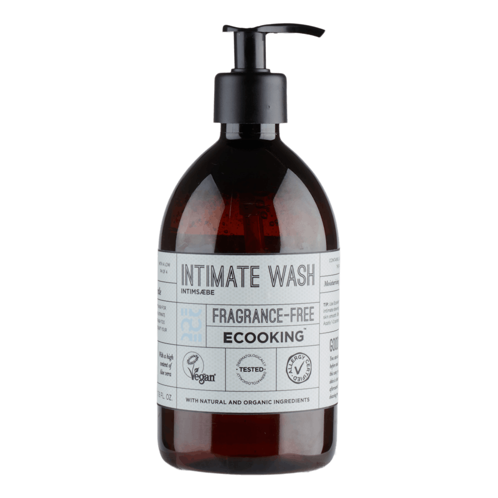 Intimate Wash fra Ecooking er en intimsåpe med melkesyre og inulin som skal øke veksten av sunne bakterier. Inneholder også vitamin-E og aloe vera. Dermatologisk testet og parfymefri.