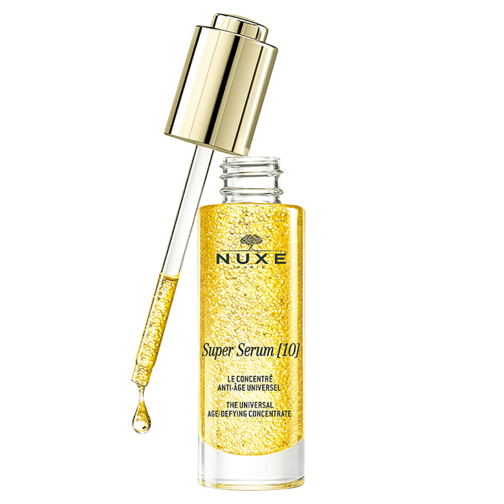Super Serum fra Nuxe er et effektivt anti-aldringskonsentrat med et patentert botanisk kompleks [FR] som skal stimulere hudens naturlige mekanismer. Fra første dråpe skal huden bli glattere og mer utfylt. I løpet av få uker skal huden framstå som forvandlet – dype og fine linjer skal være utglattet, huden fastere, hudtonen jevnere, mørke flekker visket bort og porene sammentrukket.